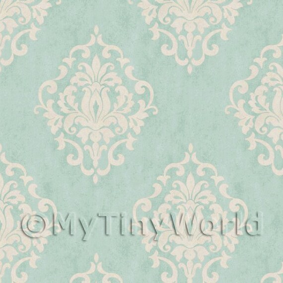 Dolls House Miniature Duck Egg Blue Floral Diamond Wallpaper 13423
