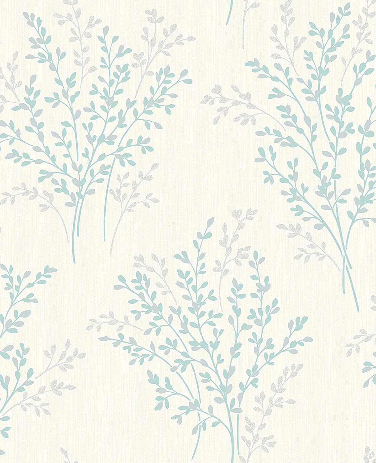Graham And Brown Sublime Theia Duck Egg Floral Metallic Wallpaper 106599