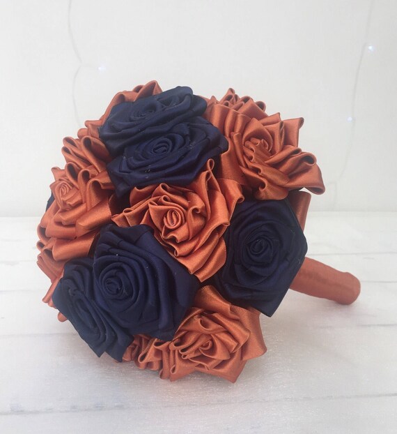 Bride Bridesmaid Wedding Bouquet Copper And Navy Blue Satin Rose Artificial Flowers