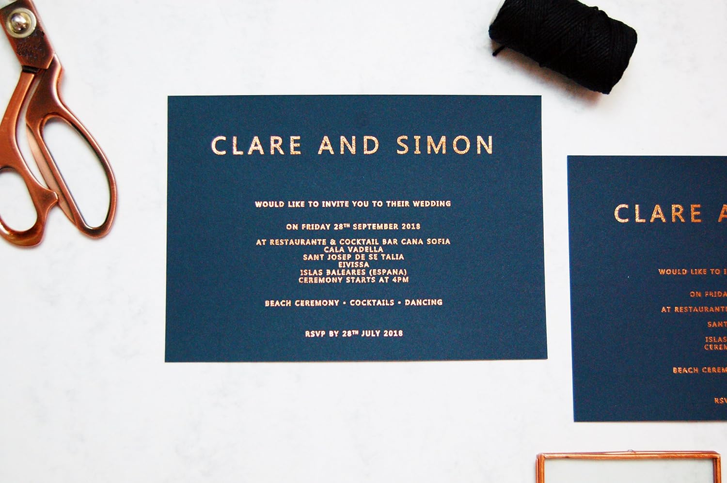 Copper Navy Wedding Invitation Foxyfox Co Uk